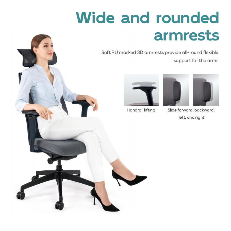 Through its striking charm Arco is placed in the working environment to transmit trust to customers. It is designed to follow the human body flexibility and every postural movement being perfectly ergonomic and highly functional.The action seat is 111 mm wide, 11 mm deep and 323 mm high.The headrest and armrest adaptability are complemented to the aerodynamic structure and its padded support in the lumbar zone fulfills a good posture and a greater comfort.