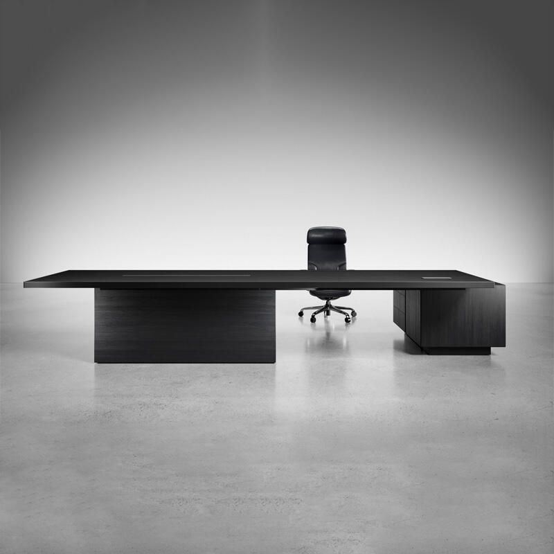 Директорський стіл Sho визначає сучасний робочий простір знову, завдяки сміливій геометрії та безперервній інтеграції зберігання та функціоналу. Простора плаваюча робоча поверхня в поєднанні з міцною бічною тумбою забезпечує одночасно візуальну легкість і владну присутність. Продумана конструкція шаф дозволяє ефективно організовувати простір, а мінімалістичні обриси та високоякісні оздоблювальні матеріали створюють атмосферу стриманої авторитетності. Кожна деталь створена для лідерів, що цінують ясність, ефективність і класичний стиль. Sho – це не просто стіл, це фундамент для бачення, стратегії та успіху.